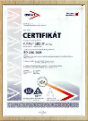Certifikát o zavedení a používaní systému enviromentálneho manažérstva podľa normy ISO 14001 : 2004 v oblasti : Vykonávanie inžinierskych, priemyselných, bytových ačianskych stavieb vrátane vybavenia sídliskových celkov.